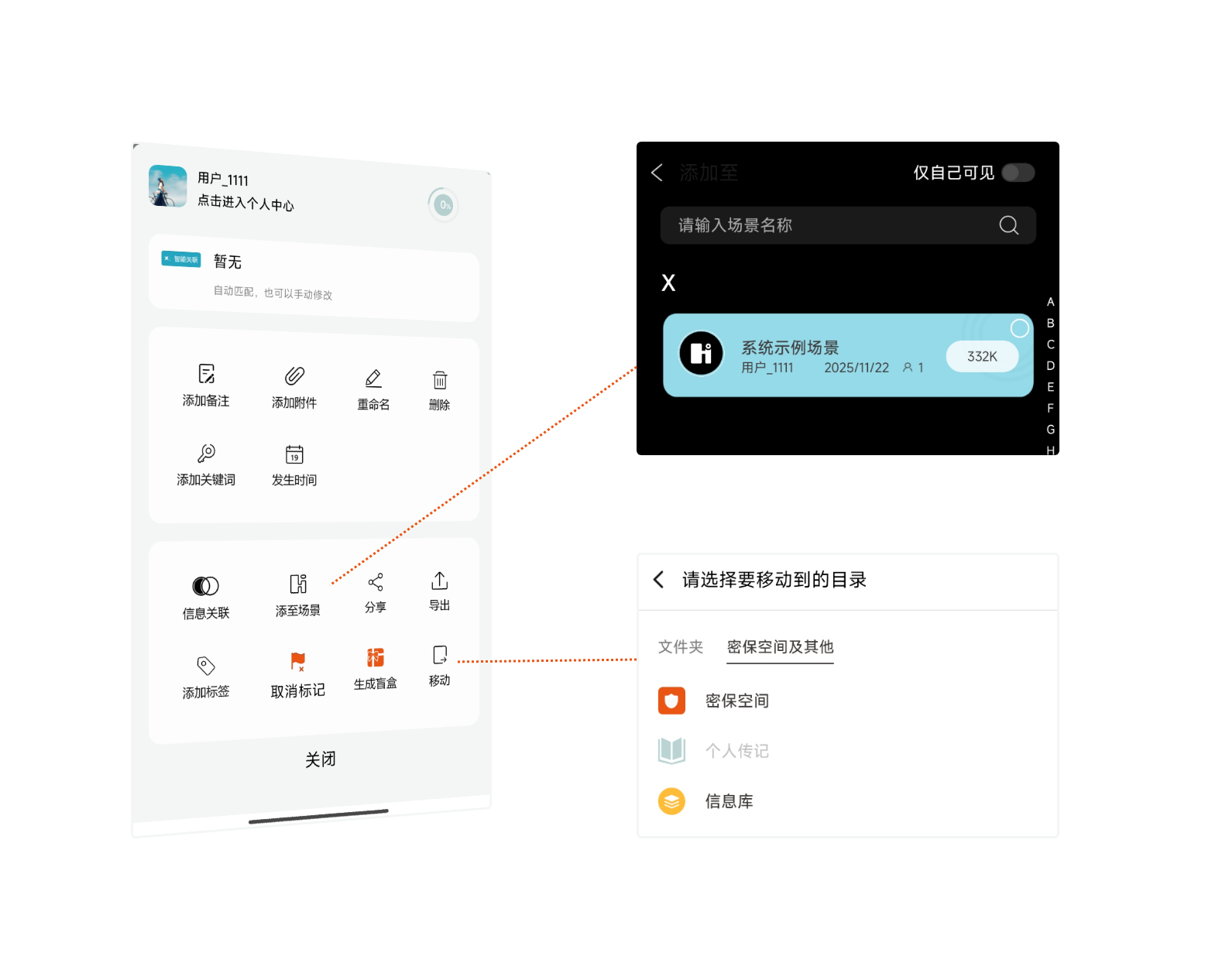 <2> 支持模块内数据通过移动的形式进行移动(信息库--个人传记--文件夹...);