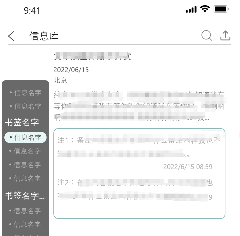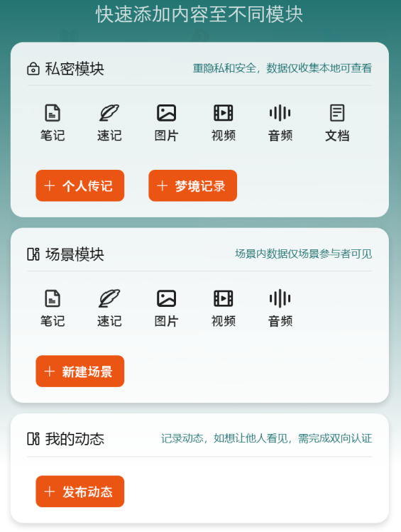 瞬间即永恒,保留最初的自己,所有信息的文字部分,一旦录入完成,内容不可更改,包括笔记的正文、备注、信息的讨论、场景留言等。