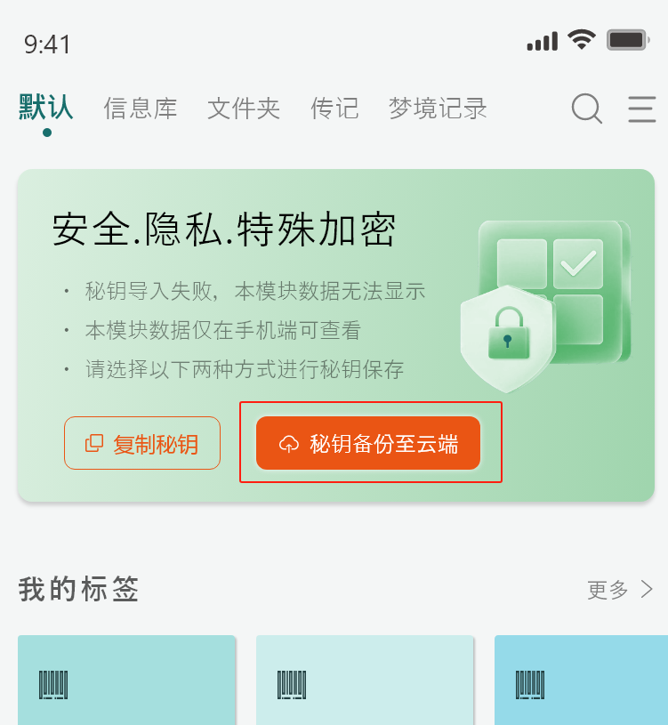 <4> 私密模块所有数据,在云端备份时,属于“黑盒”式备份,真正做到在没有秘钥的情况下,无人可查看此信息;